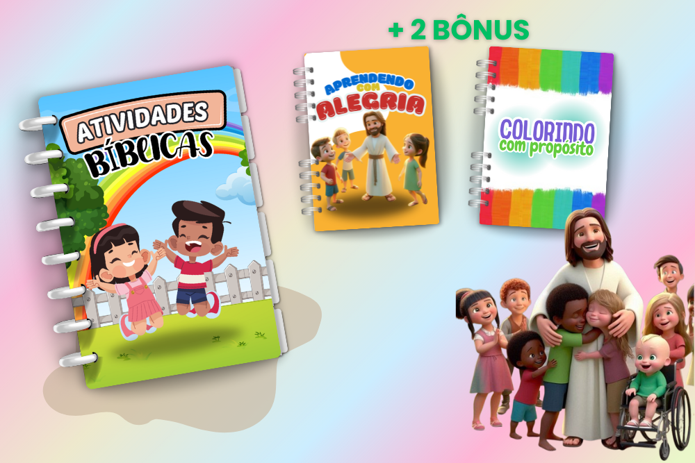 Você terá acesso a um material exclusivos feito por professores Cristãos para pais e outros professores! São mais de 600 atividades Bíblicas prontas para imprimir e utilizar com as crianças a partir dos 3 anos.